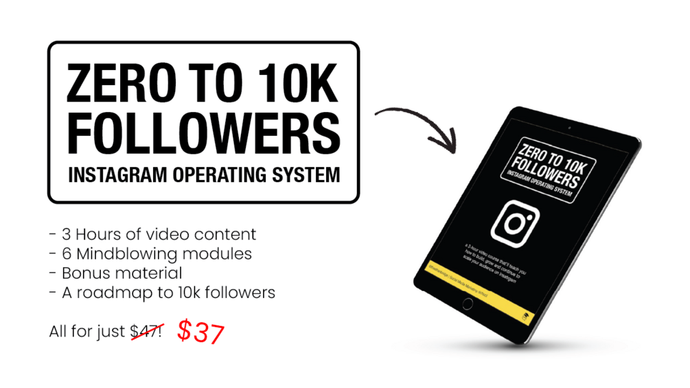 The "Zero To 10K Followers: Instagram Operating System" shares ALL of the strategies I have implemented AND the tools I used to gain over 50,000 audience members organically (that's right, not a single paid ad was used)!Â